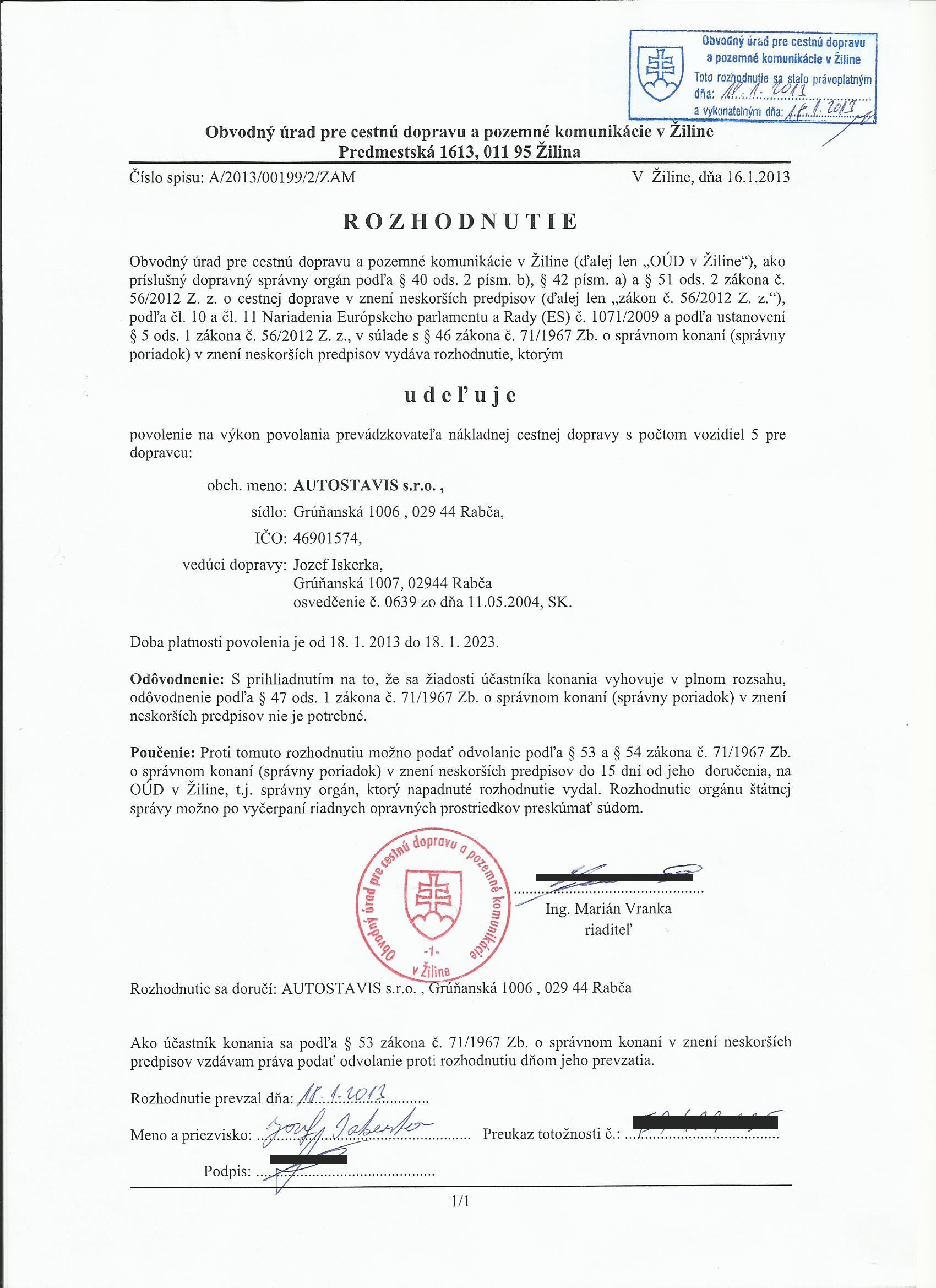 Korene našej rodinnej spoločnosti AUTOSTAVIS, s.r.o. siahajú do roku 2012. Následne v roku 2013 sme získali povolenie k vykonávaniu vnútroštátnej a medzinárodnej dopravy.